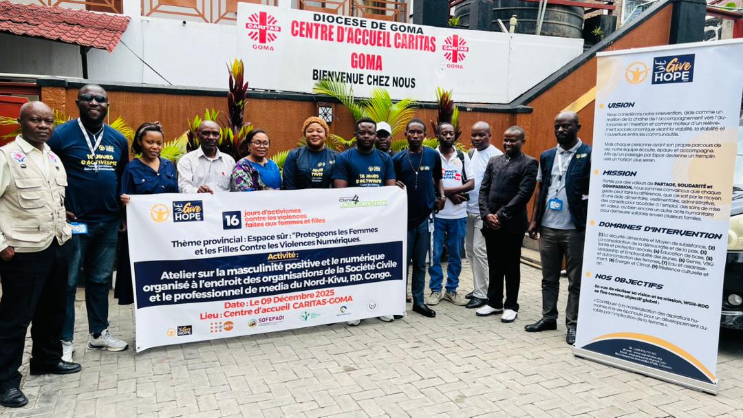 Nord-Kivu : Les organisations de la société civile et les responsables de médias brisent lesilence sur les violences numériques et la masculinité positiveVenus de différents coins de ville de Goma : des journalistes, les responsables des organisations participent à la clôture de 16 joursd’activisme sur les violences numériques et sur la masculinité positive à Goma…